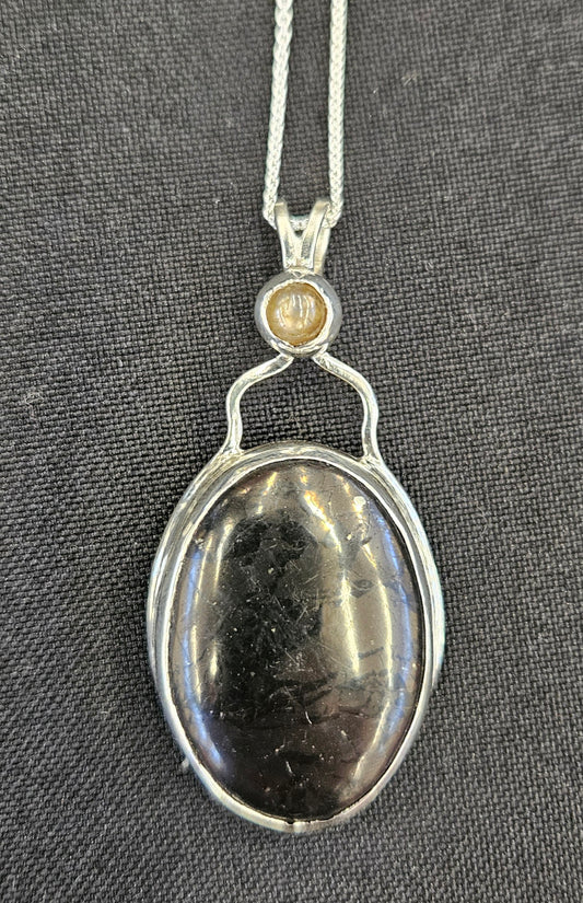 Shungite with Moonstone necklace in Sterling Silver